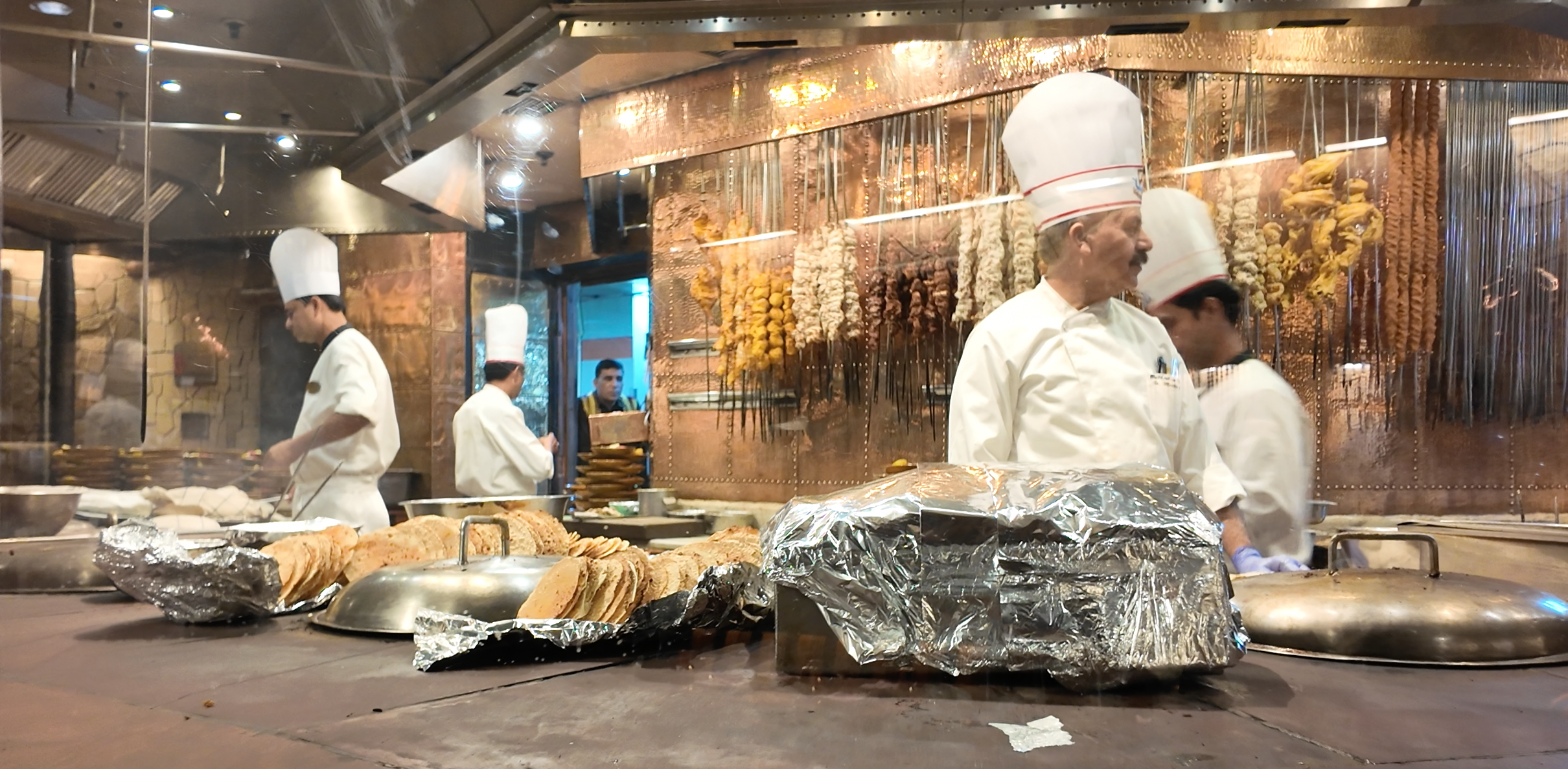 The restaurant is known for its kebabs but also serves curries, bread, rice, bowls, and desserts.